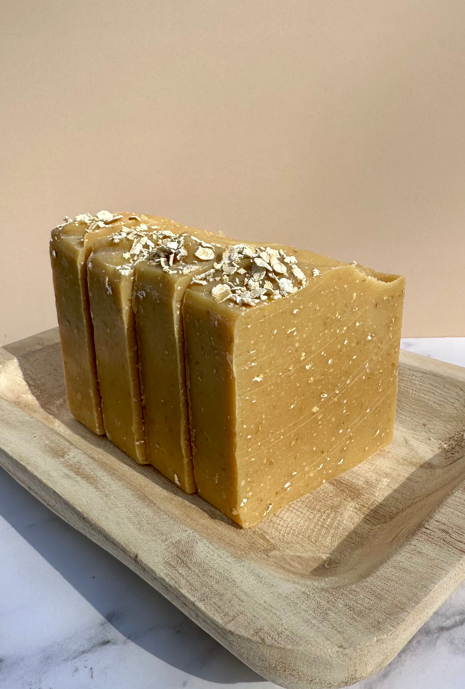 Comfort in a bar. This cozy soap is infused with warm cinnamon essential oil and ground oats for gentle exfoliation. It's soothing, nourishing, and perfect for dry or sensitive skin thanks to the creamy goat milk base.