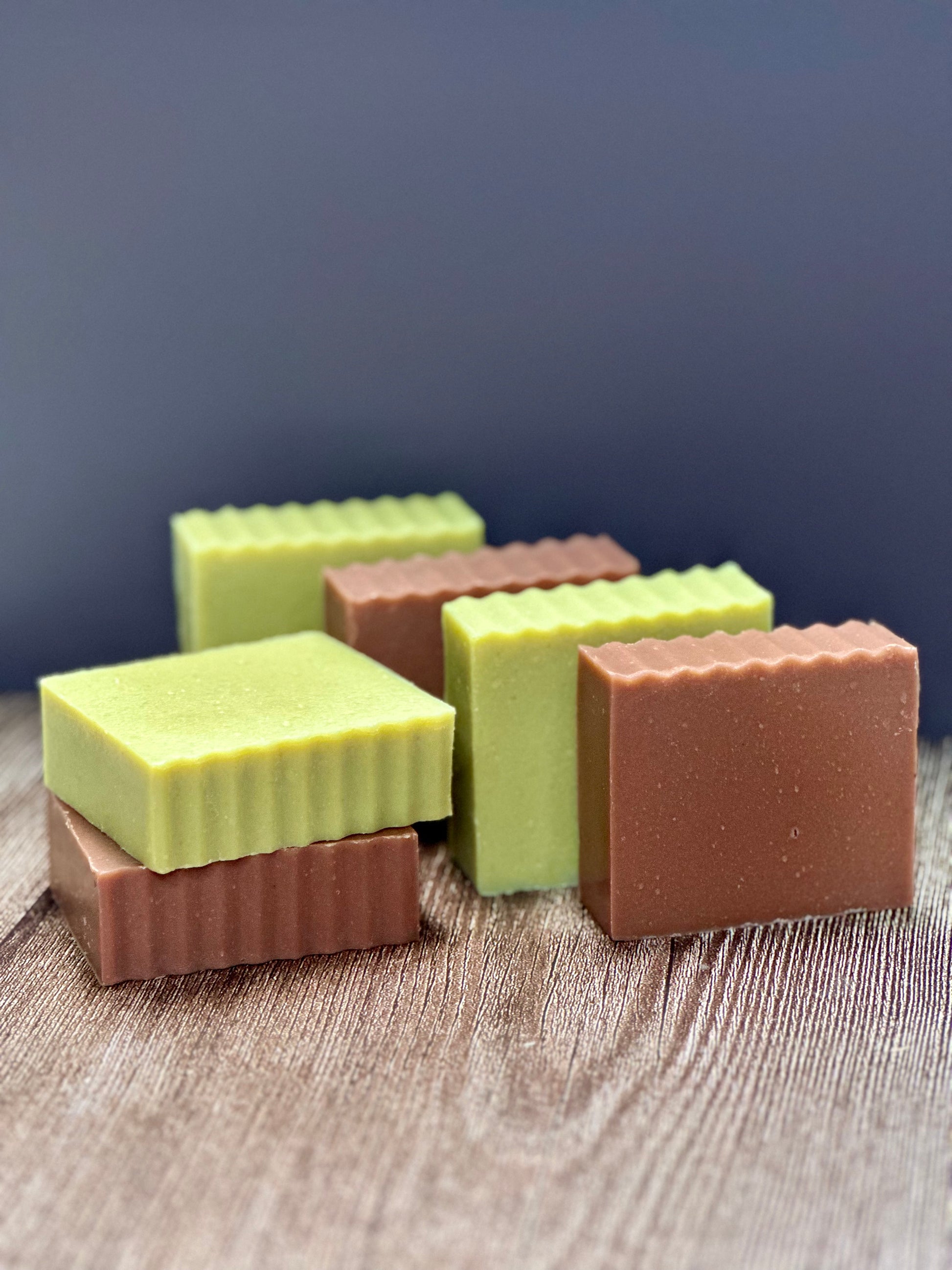 We use skin-loving oils, nourishing shea butter, and a touch of natural clay for color—no synthetic fragrances, dyes, or harsh ingredients here. Just a wholesome, lightly scented soap that cleans while keeping skin soft and happy.
