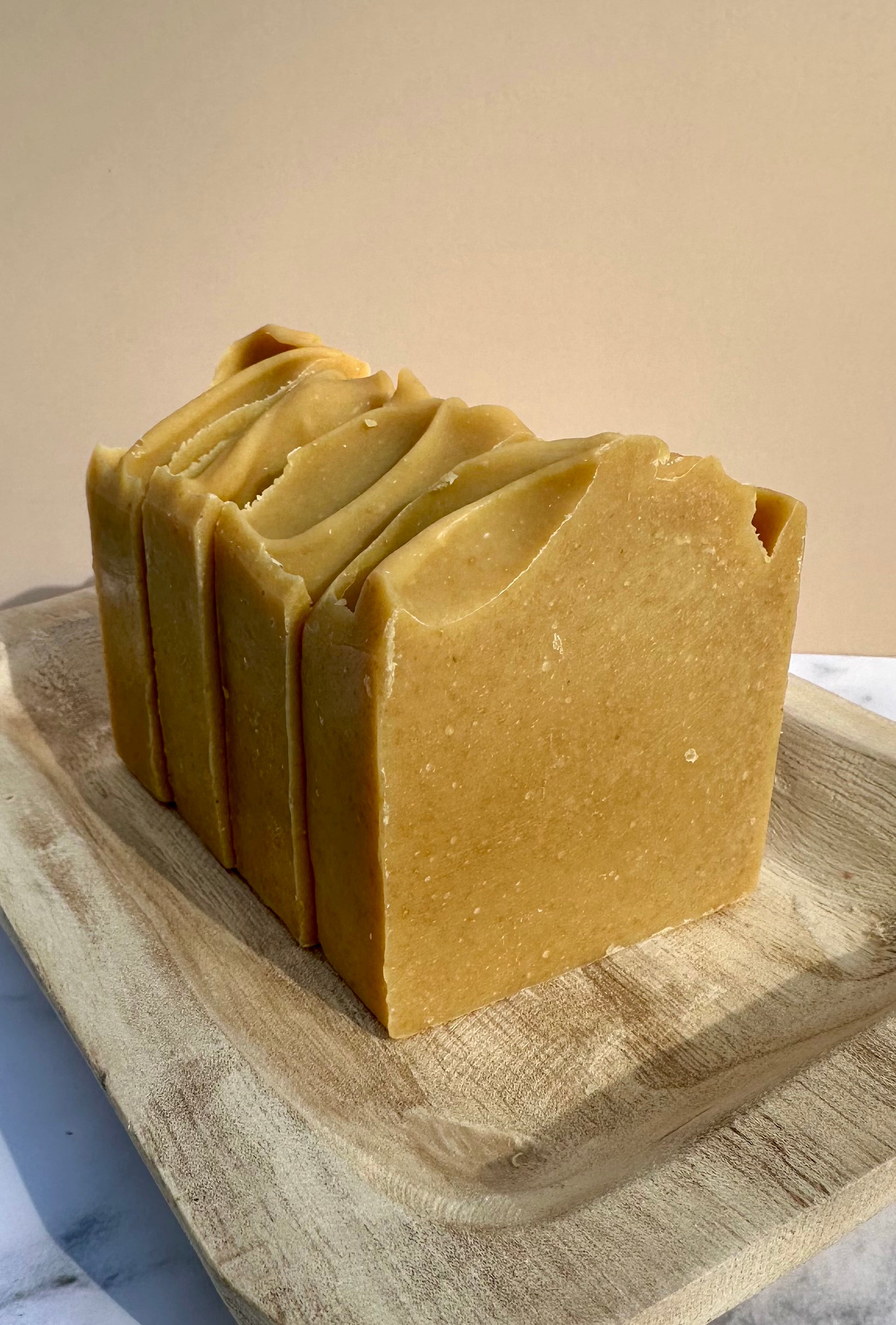 Ingredients: Beef Tallow, Rector Valley Ranch Goat Milk, Olive Oil, Organic Coconut Oil, Sodium Hydroxide (Lye), Castor Oil, Pumpkin Purée, Kaolin Clay, Vanilla Bean Powder, Essential Oils: Cinnamon Leaf, Sweet Orange, Nutmeg, Clove, Benzoin Resin.